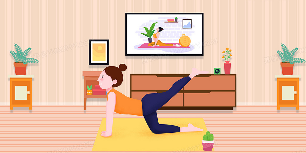 本作品内容为手绘插画风居家瑜伽合成背景, 格式为 psd, 大小6 MB, 图片尺寸为4724 x 2362, 作品中背景图片无需修改, 源文件无水印,可以直接使用, 欢迎使用熊猫办公。 如认为平台内容涉嫌侵权,可通过邮件:tousu@tukuppt.com提出书面通知,我们将及时处理。