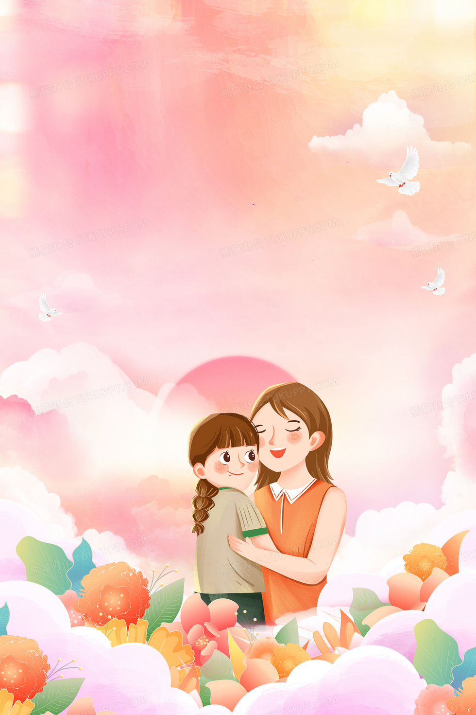 本作品内容为手绘插画风母亲节温馨背景, 格式为 psd, 大小124 MB, 图片尺寸为3543 x 5315, 作品中背景图片无需修改, 源文件无水印,可以直接使用, 欢迎使用熊猫办公。 如认为平台内容涉嫌侵权,可通过邮件:tousu@tukuppt.com提出书面通知,我们将及时处理。