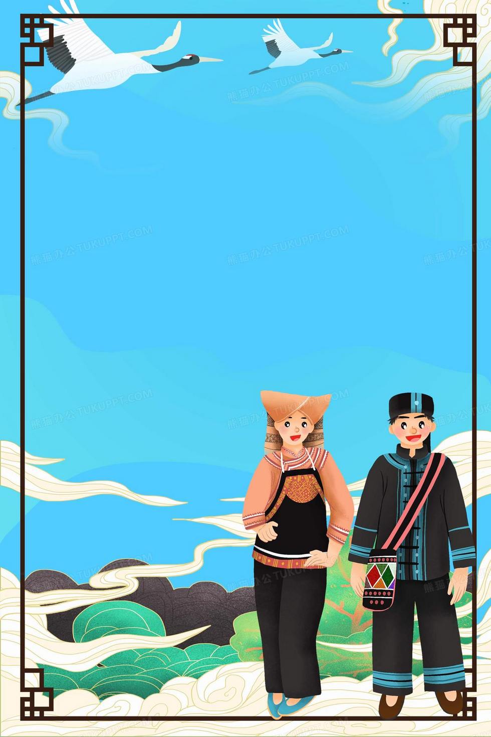 本作品内容为中国壮族少数民族传统服饰展示边框背景, 格式为 psd, 大小12 MB, 图片尺寸为2362 x 3543, 作品中背景图片无需修改, 源文件无水印,可以直接使用, 欢迎使用熊猫办公。 如认为平台内容涉嫌侵权,可通过邮件:tousu@tukuppt.com提出书面通知,我们将及时处理。