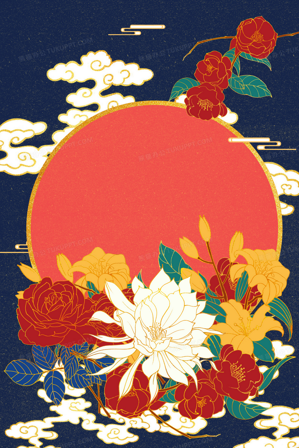 本作品内容为国潮手绘中式花卉装饰背景插画, 格式为 psd, 大小47 MB, 图片尺寸为2343 x 3508, 作品中背景图片无需修改, 源文件无水印,可以直接使用, 欢迎使用熊猫办公。 如认为平台内容涉嫌侵权,可通过邮件:tousu@tukuppt.com提出书面通知,我们将及时处理。