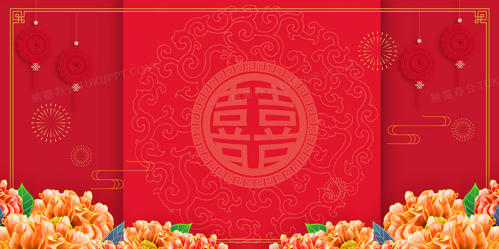 本作品内容为中式婚礼喜庆牡丹喜字花纹背景, 格式为 psd, 大小30 MB, 图片尺寸为4724 x 2362, 作品中背景图片无需修改, 源文件无水印,可以直接使用, 欢迎使用熊猫办公。 如认为平台内容涉嫌侵权,可通过邮件:tousu@tukuppt.com提出书面通知,我们将及时处理。