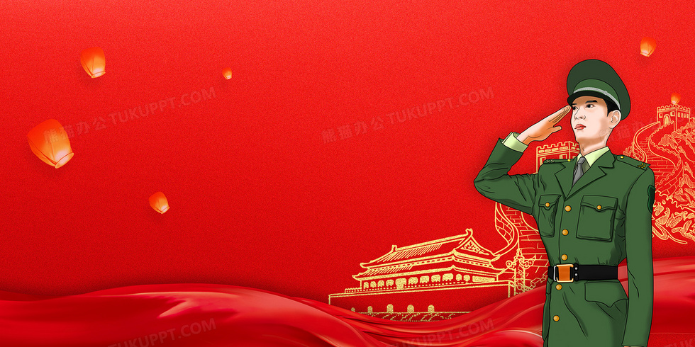 本作品内容为红色党建建军节天安门军人敬礼背景, 格式为 psd, 大小102 MB, 图片尺寸为4724 x 2362, 作品中背景图片无需修改, 源文件无水印,可以直接使用, 欢迎使用熊猫办公。 如认为平台内容涉嫌侵权,可通过邮件:tousu@tukuppt.com提出书面通知,我们将及时处理。
