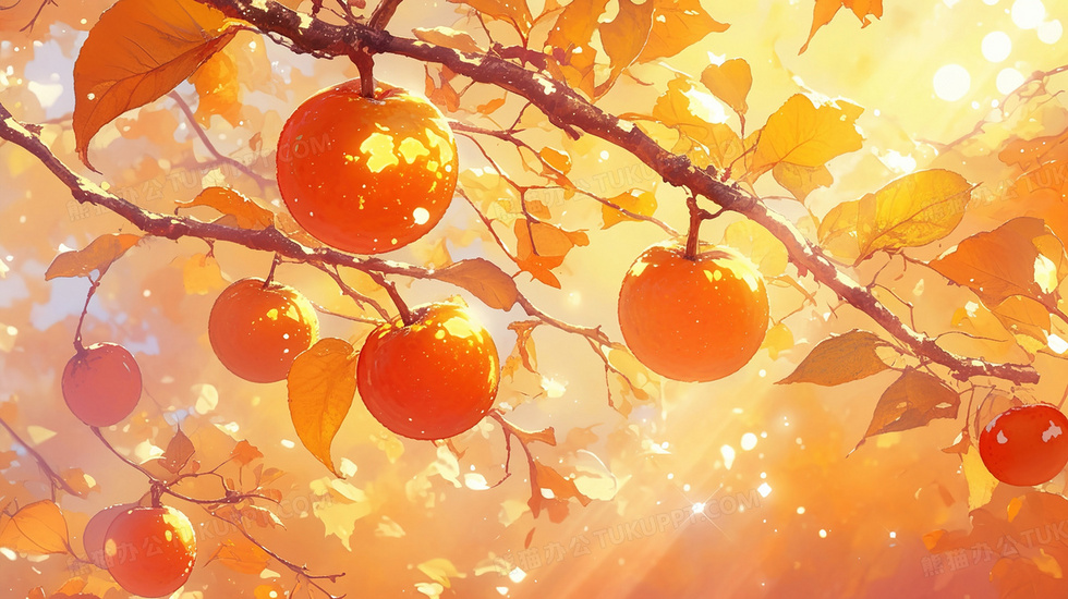 本作品内容为秋季硕果累累的柿子树插画, 格式为 jpg, 大小3 MB, 图片尺寸为2912 x 1632, 源文件无水印, 欢迎使用熊猫办公。 如认为平台内容涉嫌侵权,可通过邮件:tousu@tukuppt.com提出书面通知,我们将及时处理。