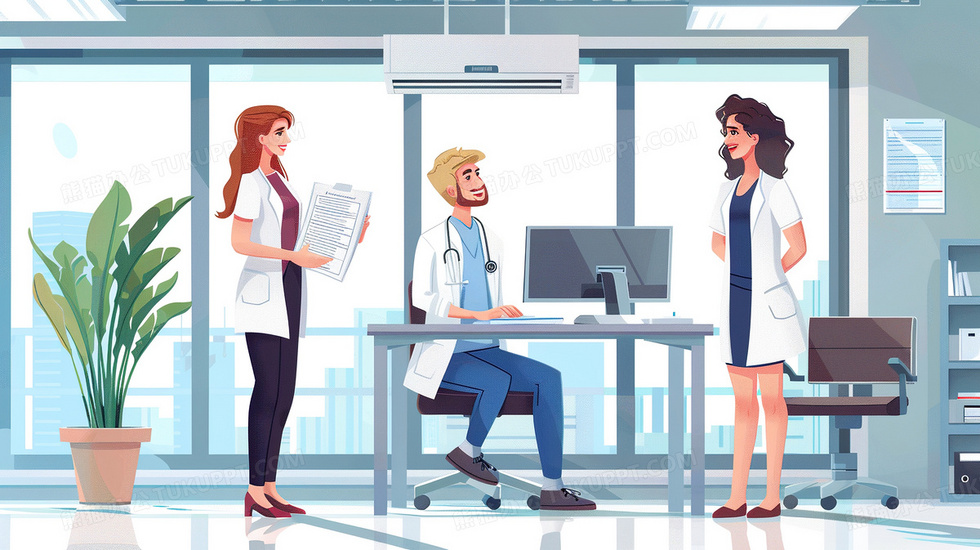 本作品内容为医生会诊医院医疗插画, 格式为 jpg, 大小3 MB, 图片尺寸为2912 x 1632, 源文件无水印, 欢迎使用熊猫办公。 如认为平台内容涉嫌侵权,可通过邮件:tousu@tukuppt.com提出书面通知,我们将及时处理。