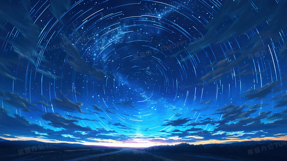本作品内容为蓝色唯美星空星轨插画, 格式为 jpg, 大小3 MB, 图片尺寸为2912 x 1632, 源文件无水印, 欢迎使用熊猫办公。 如认为平台内容涉嫌侵权,可通过邮件:tousu@tukuppt.com提出书面通知,我们将及时处理。
