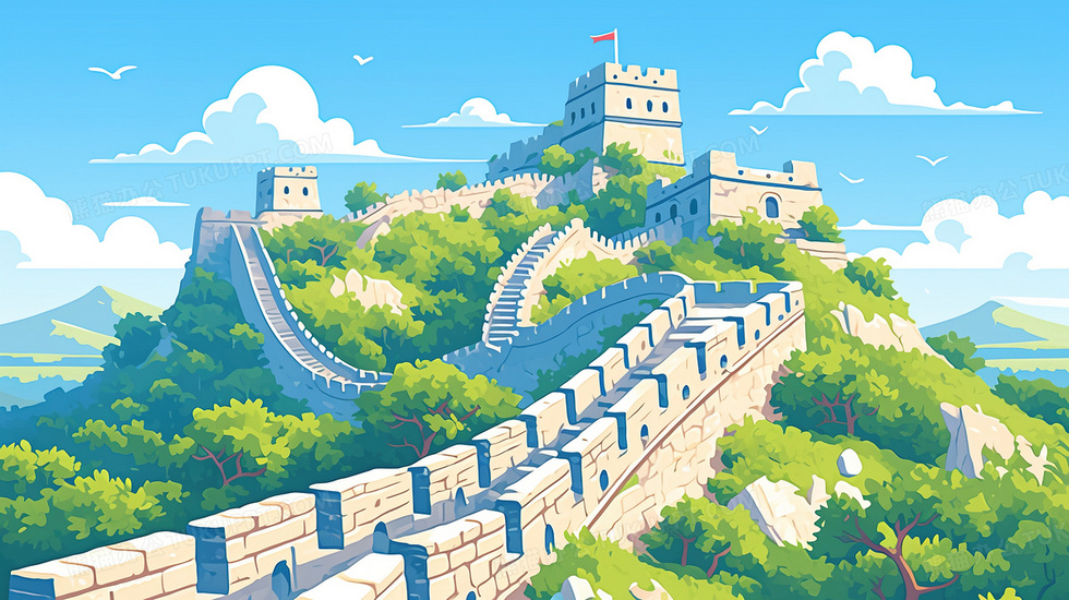 首页 > 插画 > 科技艺术 > 卡通漫画 > 蓝天白云卡通国庆节长城插画
