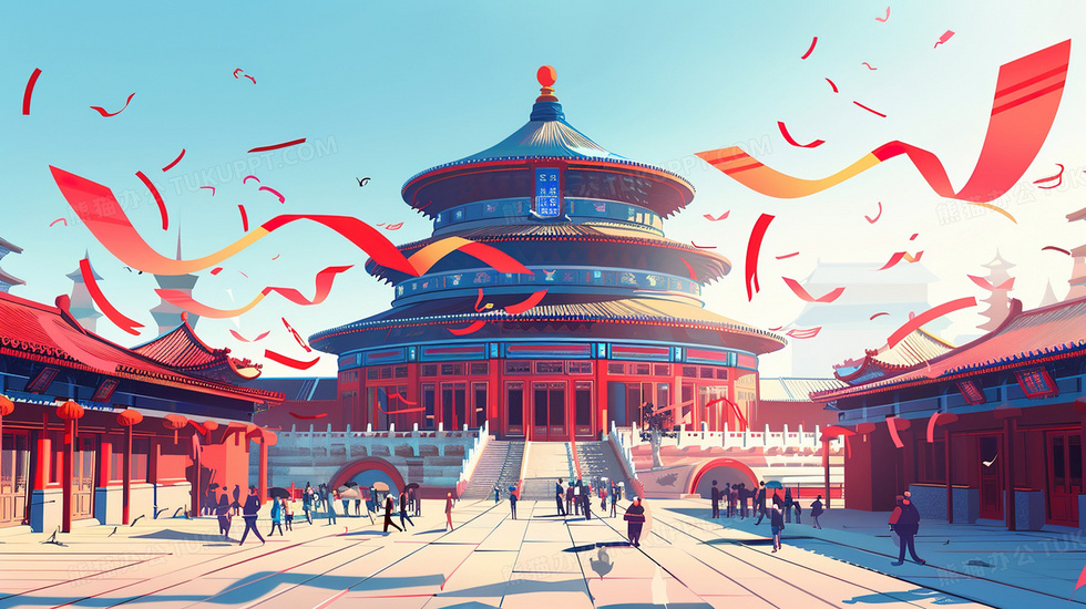 本作品内容为国庆节天坛建筑插画, 格式为 jpg, 大小3 MB, 图片尺寸为2912 x 1632, 源文件无水印, 欢迎使用熊猫办公。 如认为平台内容涉嫌侵权,可通过邮件:tousu@tukuppt.com提出书面通知,我们将及时处理。