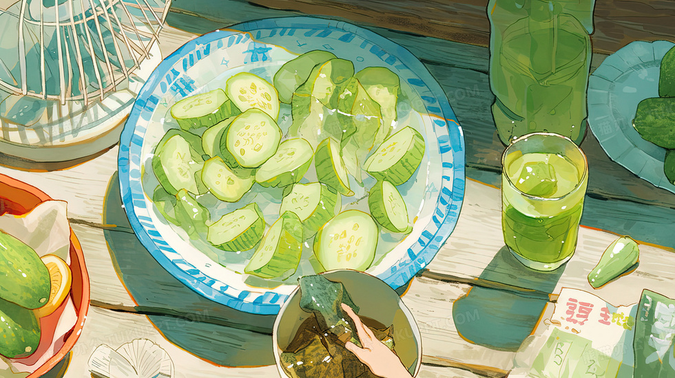 本作品内容为盘中解暑的美食苦瓜插画, 格式为 jpg, 大小7 MB, 图片尺寸为2912 x 1632, 源文件无水印, 欢迎使用熊猫办公。 如认为平台内容涉嫌侵权,可通过邮件:tousu@tukuppt.com提出书面通知,我们将及时处理。