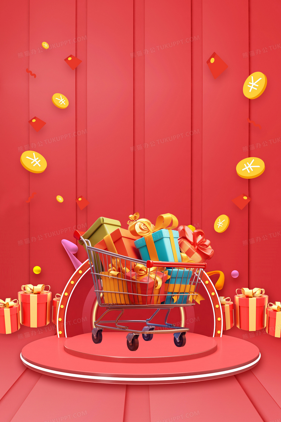 本作品内容为3D立体电商节促销背景, 格式为 psd, 大小61 MB, 图片尺寸为3543 x 5315, 作品中背景图片无需修改, 源文件无水印,可以直接使用, 欢迎使用熊猫办公。 如认为平台内容涉嫌侵权,可通过邮件:tousu@tukuppt.com提出书面通知,我们将及时处理。
