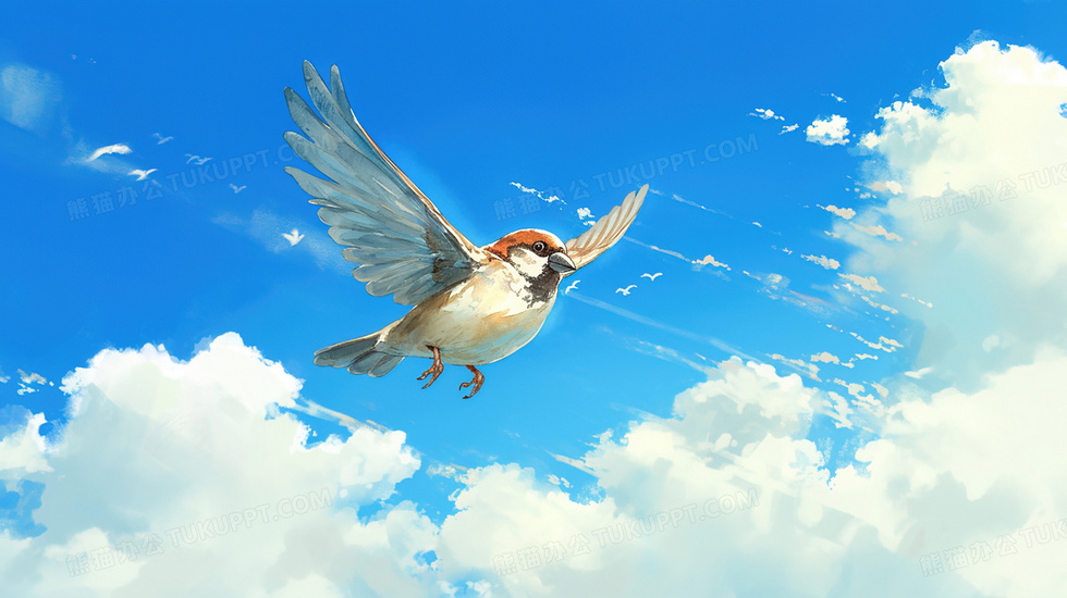 本作品内容为卡通蓝天小鸟飞行背景, 格式为 jpg, 大小3 MB, 图片尺寸为2912 x 1632, 作品中背景图片无需修改, 源文件无水印,可以直接使用, 欢迎使用熊猫办公。 如认为平台内容涉嫌侵权,可通过邮件:tousu@tukuppt.com提出书面通知,我们将及时处理。