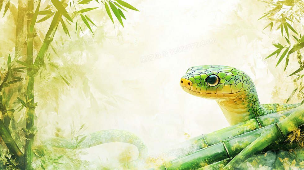 本作品内容为中国风绿色竹林青蛇简约背景图, 格式为 jpg, 大小3 MB, 图片尺寸为2912 x 1632, 作品中背景图片无需修改, 源文件无水印,可以直接使用, 欢迎使用熊猫办公。 如认为平台内容涉嫌侵权,可通过邮件:tousu@tukuppt.com提出书面通知,我们将及时处理。