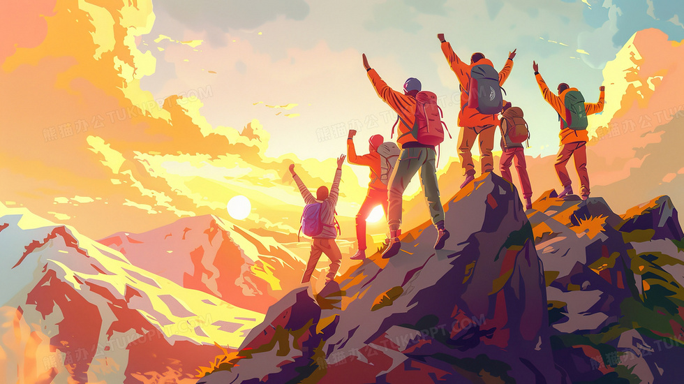 本作品内容为站在山顶看日出的青年人插画, 格式为 jpg, 大小3 MB, 图片尺寸为2912 x 1632, 源文件无水印, 欢迎使用熊猫办公。 如认为平台内容涉嫌侵权,可通过邮件:tousu@tukuppt.com提出书面通知,我们将及时处理。