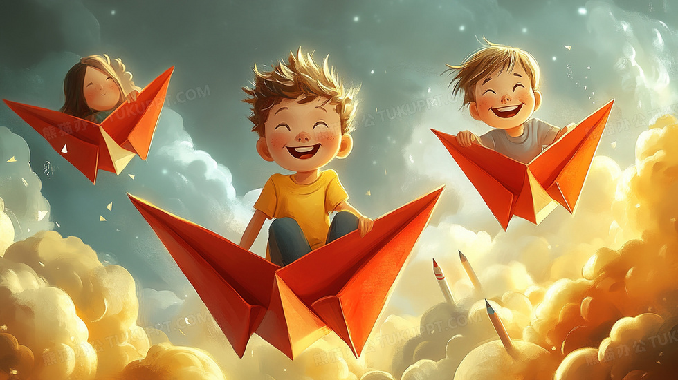 本作品内容为梦幻风格孩子们坐在纸飞机上的插画, 格式为 jpg, 大小3 MB, 图片尺寸为2912 x 1632, 源文件无水印, 欢迎使用熊猫办公。 如认为平台内容涉嫌侵权,可通过邮件:tousu@tukuppt.com提出书面通知,我们将及时处理。
