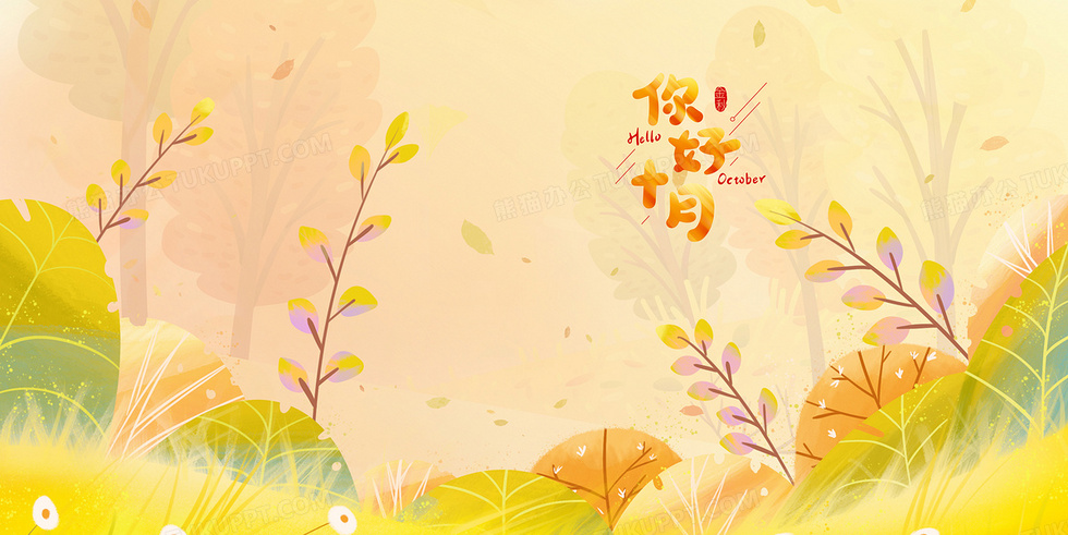 本作品内容为秋天树叶风景十月你好背景, 格式为 psd, 大小49 MB, 图片尺寸为4722 x 2366, 作品中背景图片无需修改, 源文件无水印,可以直接使用, 欢迎使用熊猫办公。 如认为平台内容涉嫌侵权,可通过邮件:tousu@tukuppt.com提出书面通知,我们将及时处理。