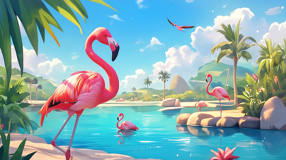 本作品内容为动物园池塘边动物火烈鸟插画, 格式为 jpg, 大小2 MB, 图片尺寸为2912 x 1632, 源文件无水印, 欢迎使用熊猫办公。 如认为平台内容涉嫌侵权,可通过邮件:tousu@tukuppt.com提出书面通知,我们将及时处理。