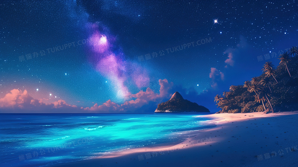 本作品内容为唯美海边夜色星空风景插画, 格式为 jpg, 大小4 MB, 图片尺寸为2912 x 1632, 源文件无水印, 欢迎使用熊猫办公。 如认为平台内容涉嫌侵权,可通过邮件:tousu@tukuppt.com提出书面通知,我们将及时处理。