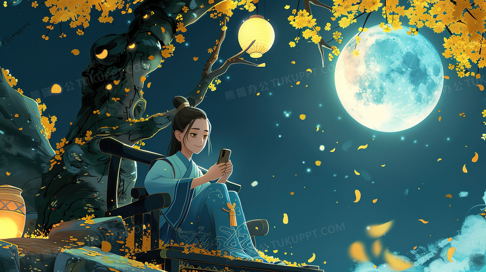 本作品内容为中秋节在月亮下喝茶的插画, 格式为 jpg, 大小3 MB, 图片尺寸为2912 x 1632, 源文件无水印, 欢迎使用熊猫办公。 如认为平台内容涉嫌侵权,可通过邮件:tousu@tukuppt.com提出书面通知,我们将及时处理。