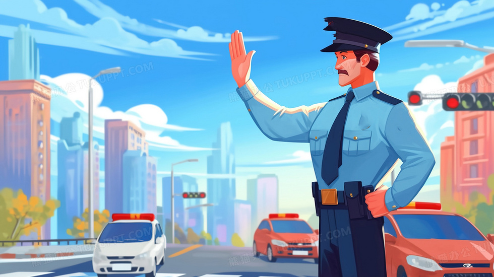 本作品内容为道路中心交通指挥的男交警插画, 格式为 jpg, 大小2 MB, 图片尺寸为2912 x 1632, 源文件无水印, 欢迎使用熊猫办公。 如认为平台内容涉嫌侵权,可通过邮件:tousu@tukuppt.com提出书面通知,我们将及时处理。