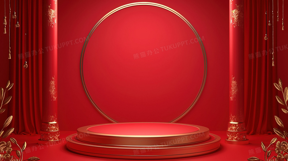 本作品内容为红色喜庆春节舞台展台背景, 格式为 jpg, 大小2 MB, 图片尺寸为2912 x 1632, 作品中背景图片无需修改, 源文件无水印,可以直接使用, 欢迎使用熊猫办公。 如认为平台内容涉嫌侵权,可通过邮件:tousu@tukuppt.com提出书面通知,我们将及时处理。