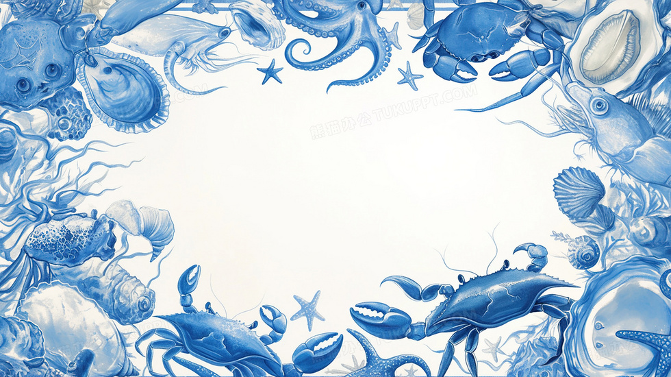 本作品内容为海洋海鲜装饰边框背景, 格式为 jpg, 大小3 MB, 图片尺寸为2912 x 1632, 作品中背景图片无需修改, 源文件无水印,可以直接使用, 欢迎使用熊猫办公。 如认为平台内容涉嫌侵权,可通过邮件:tousu@tukuppt.com提出书面通知,我们将及时处理。