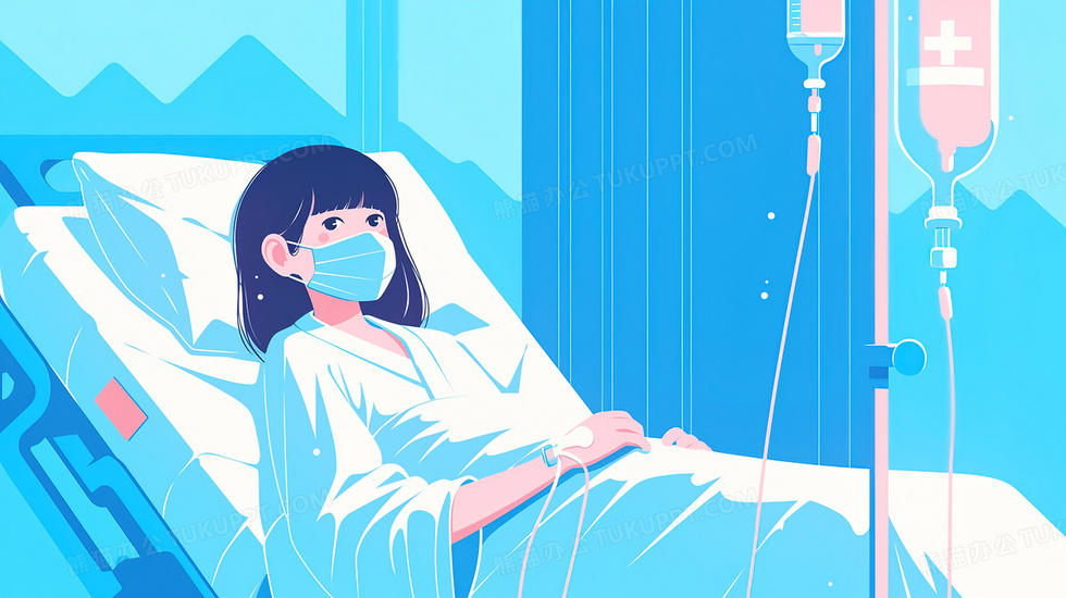 本作品内容为生病住院吊药水的女孩插画, 格式为 jpg, 大小2 MB, 图片尺寸为2912 x 1632, 源文件无水印, 欢迎使用熊猫办公。 如认为平台内容涉嫌侵权,可通过邮件:tousu@tukuppt.com提出书面通知,我们将及时处理。