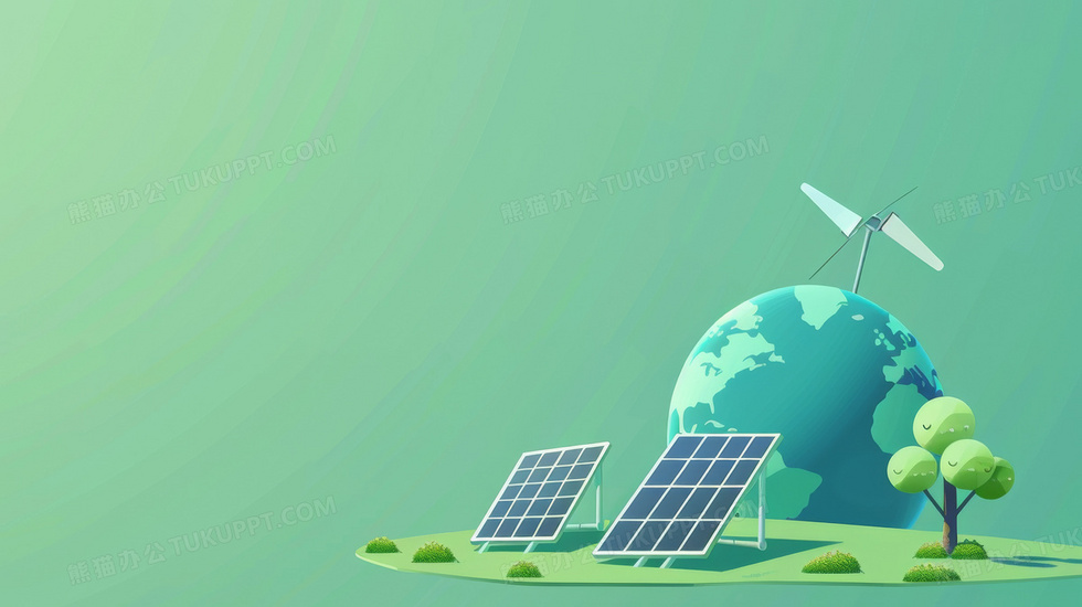 本作品内容为卡通新能源太阳能板地球背景, 格式为 jpg, 大小5 MB, 图片尺寸为2912 x 1632, 作品中背景图片无需修改, 源文件无水印,可以直接使用, 欢迎使用熊猫办公。 如认为平台内容涉嫌侵权,可通过邮件:tousu@tukuppt.com提出书面通知,我们将及时处理。