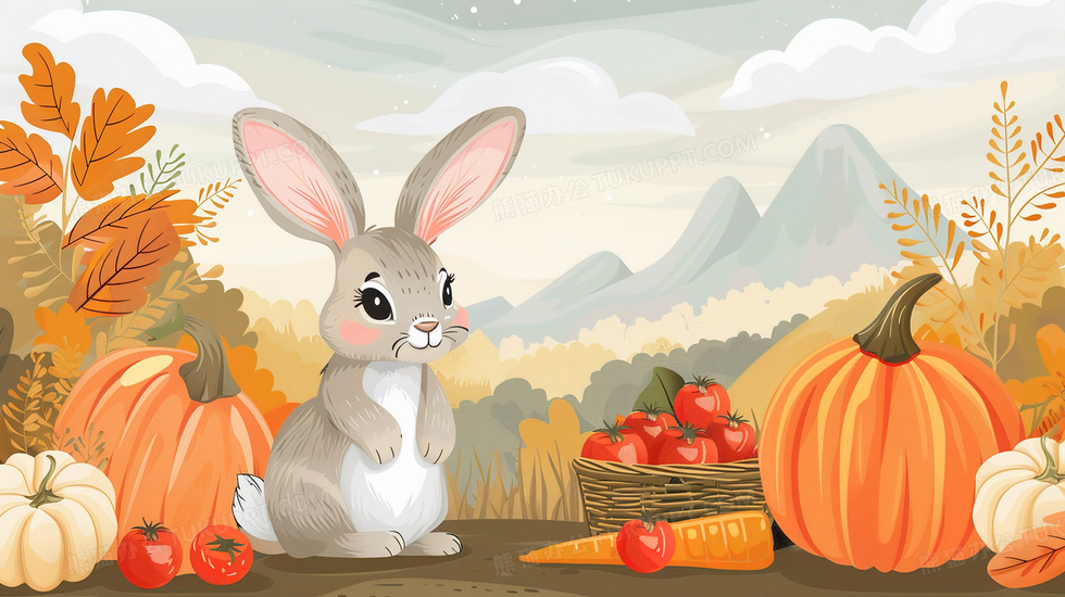 本作品内容为手绘丰收日兔子与胡萝卜南瓜插画, 格式为 jpg, 大小3 MB, 图片尺寸为2912 x 1632, 源文件无水印, 欢迎使用熊猫办公。 如认为平台内容涉嫌侵权,可通过邮件:tousu@tukuppt.com提出书面通知,我们将及时处理。