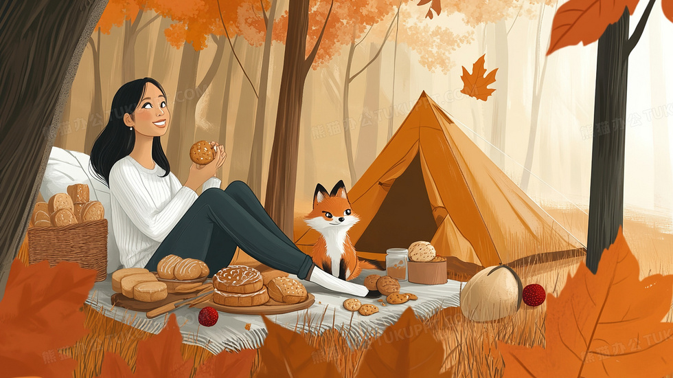 本作品内容为秋天女孩野营搭帐篷野餐插画, 格式为 jpg, 大小3 MB, 图片尺寸为2912 x 1632, 源文件无水印, 欢迎使用熊猫办公。 如认为平台内容涉嫌侵权,可通过邮件:tousu@tukuppt.com提出书面通知,我们将及时处理。