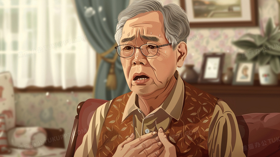 本作品内容为胸部疼痛心脏问题的老年人插画, 格式为 jpg, 大小3 MB, 图片尺寸为2912 x 1632, 源文件无水印, 欢迎使用熊猫办公。 如认为平台内容涉嫌侵权,可通过邮件:tousu@tukuppt.com提出书面通知,我们将及时处理。