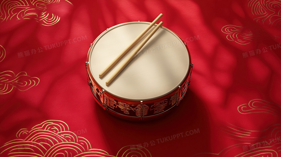 本作品内容为中国红高端色调鼓与鼓槌, 格式为 jpg, 大小3 MB, 图片尺寸为2912 x 1632, 作品中背景图片无需修改, 源文件无水印,可以直接使用, 欢迎使用熊猫办公。 如认为平台内容涉嫌侵权,可通过邮件:tousu@tukuppt.com提出书面通知,我们将及时处理。