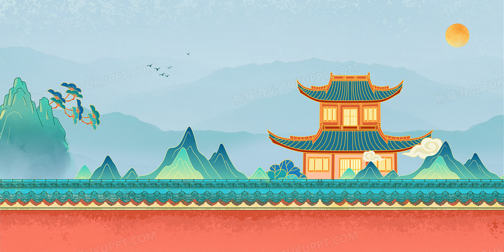 本作品内容为国潮风古建筑宫墙合成背景, 格式为 psd, 大小37 MB, 图片尺寸为4724 x 2362, 作品中背景图片无需修改, 源文件无水印,可以直接使用, 欢迎使用熊猫办公。 如认为平台内容涉嫌侵权,可通过邮件:tousu@tukuppt.com提出书面通知,我们将及时处理。