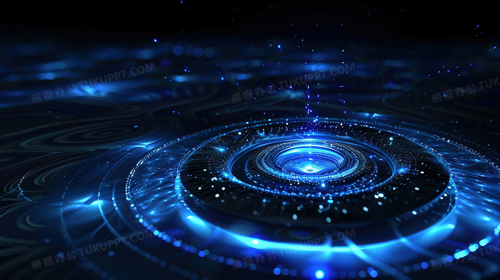 本作品内容为蓝色科技感圆环旋涡背景, 格式为 jpg, 大小3 MB, 图片尺寸为2912 x 1632, 作品中背景图片无需修改, 源文件无水印,可以直接使用, 欢迎使用熊猫办公。 如认为平台内容涉嫌侵权,可通过邮件:tousu@tukuppt.com提出书面通知,我们将及时处理。