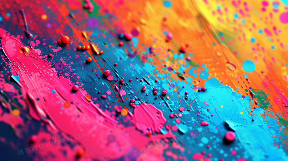 本作品内容为彩色油漆艺术纹理背景, 格式为 jpg, 大小8 MB, 图片尺寸为2912 x 1632, 作品中背景图片无需修改, 源文件无水印,可以直接使用, 欢迎使用熊猫办公。 如认为平台内容涉嫌侵权,可通过邮件:tousu@tukuppt.com提出书面通知,我们将及时处理。