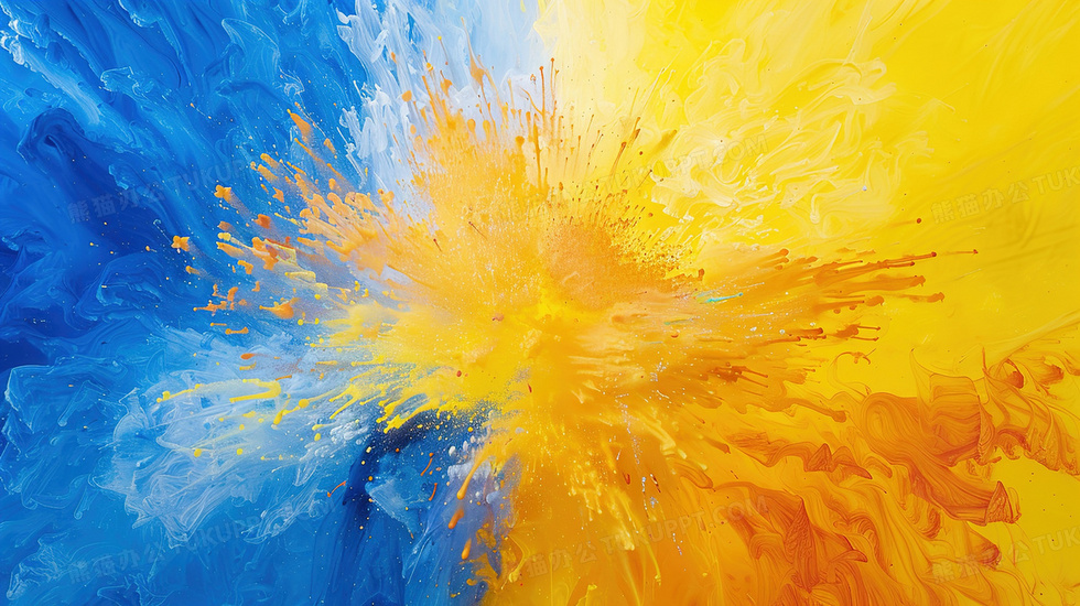 本作品内容为黄蓝渐变飞溅粉末简约背景, 格式为 jpg, 大小3 MB, 图片尺寸为2912 x 1632, 作品中背景图片无需修改, 源文件无水印,可以直接使用, 欢迎使用熊猫办公。 如认为平台内容涉嫌侵权,可通过邮件:tousu@tukuppt.com提出书面通知,我们将及时处理。