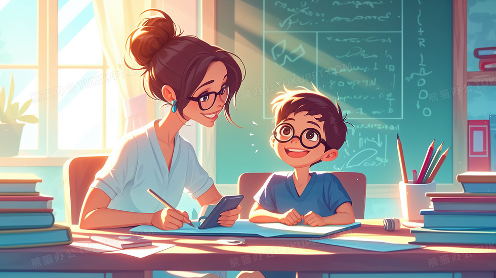 本作品内容为教师节女老师辅导学生作业插画, 格式为 jpg, 大小2 MB, 图片尺寸为2912 x 1632, 源文件无水印, 欢迎使用熊猫办公。 如认为平台内容涉嫌侵权,可通过邮件:tousu@tukuppt.com提出书面通知,我们将及时处理。