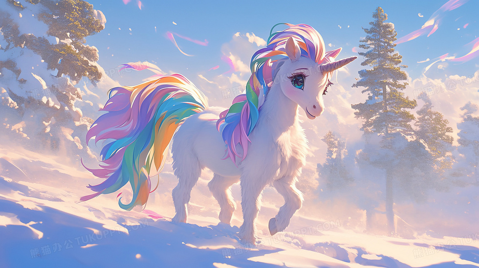 本作品内容为卡通可爱唯美彩虹独角兽冬天雪地插画, 格式为 jpg, 大小3 MB, 图片尺寸为2912 x 1632, 源文件无水印, 欢迎使用熊猫办公。 如认为平台内容涉嫌侵权,可通过邮件:tousu@tukuppt.com提出书面通知,我们将及时处理。