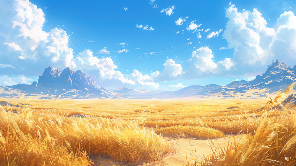 本作品内容为秋天的蓝天白云草原插画, 格式为 jpg, 大小6 MB, 图片尺寸为2912 x 1632, 源文件无水印, 欢迎使用熊猫办公。 如认为平台内容涉嫌侵权,可通过邮件:tousu@tukuppt.com提出书面通知,我们将及时处理。