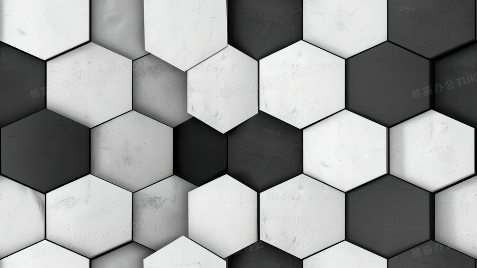 本作品内容为黑白简约蜂窝状纹理背景, 格式为 jpg, 大小3 MB, 图片尺寸为2912 x 1632, 作品中背景图片无需修改, 源文件无水印,可以直接使用, 欢迎使用熊猫办公。 如认为平台内容涉嫌侵权,可通过邮件:tousu@tukuppt.com提出书面通知,我们将及时处理。