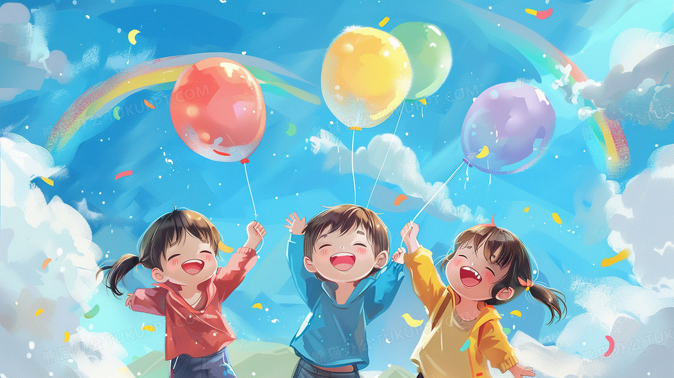 本作品内容为蓝天彩虹气球儿童俯视插画, 格式为 jpg, 大小5 MB, 图片尺寸为2912 x 1632, 源文件无水印, 欢迎使用熊猫办公。 如认为平台内容涉嫌侵权,可通过邮件:tousu@tukuppt.com提出书面通知,我们将及时处理。