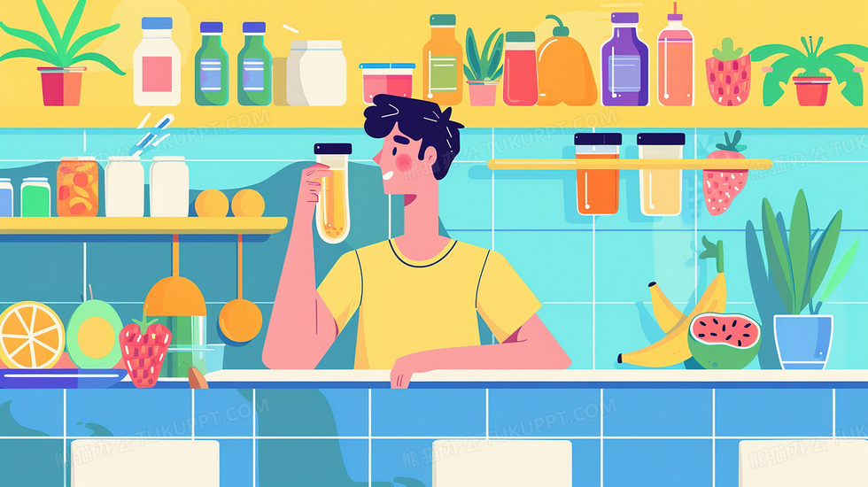 本作品内容为夏日在吧台里喝果汁的男士插画, 格式为 jpg, 大小2 MB, 图片尺寸为2912 x 1632, 源文件无水印, 欢迎使用熊猫办公。 如认为平台内容涉嫌侵权,可通过邮件:tousu@tukuppt.com提出书面通知,我们将及时处理。