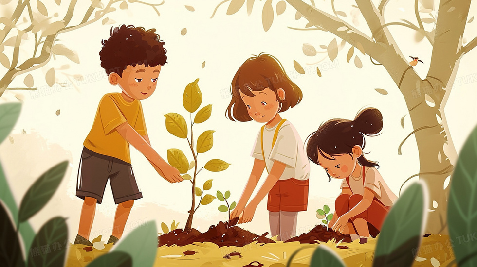 本作品内容为一起种树的孩子们插画, 格式为 jpg, 大小2 MB, 图片尺寸为2912 x 1632, 源文件无水印, 欢迎使用熊猫办公。 如认为平台内容涉嫌侵权,可通过邮件:tousu@tukuppt.com提出书面通知,我们将及时处理。