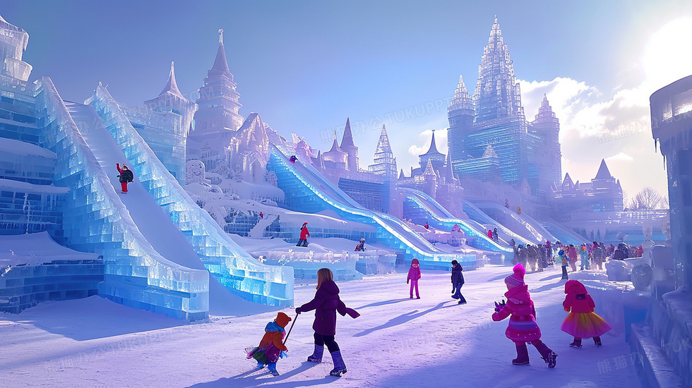 首页 > 插画 > 科技艺术 > 其他 > 冬天壮观的冰雕游乐园