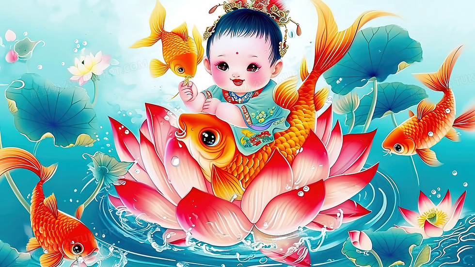 本作品内容为喜庆吉祥荷花锦鲤可爱的年画娃娃, 格式为 jpg, 大小4 MB, 图片尺寸为2912 x 1632, 源文件无水印, 欢迎使用熊猫办公。 如认为平台内容涉嫌侵权,可通过邮件:tousu@tukuppt.com提出书面通知,我们将及时处理。