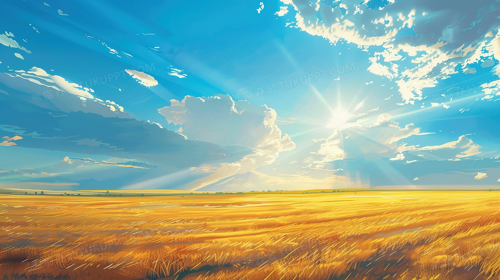 本作品内容为夏日蓝天下广阔的草原插画, 格式为 jpg, 大小3 MB, 图片尺寸为2912 x 1632, 源文件无水印, 欢迎使用熊猫办公。 如认为平台内容涉嫌侵权,可通过邮件:tousu@tukuppt.com提出书面通知,我们将及时处理。