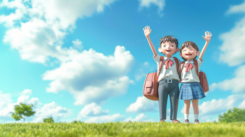 首页 > 插画 > 科技艺术 > 卡通漫画 > 新学期蓝天白云下手拉手上学小朋友插画