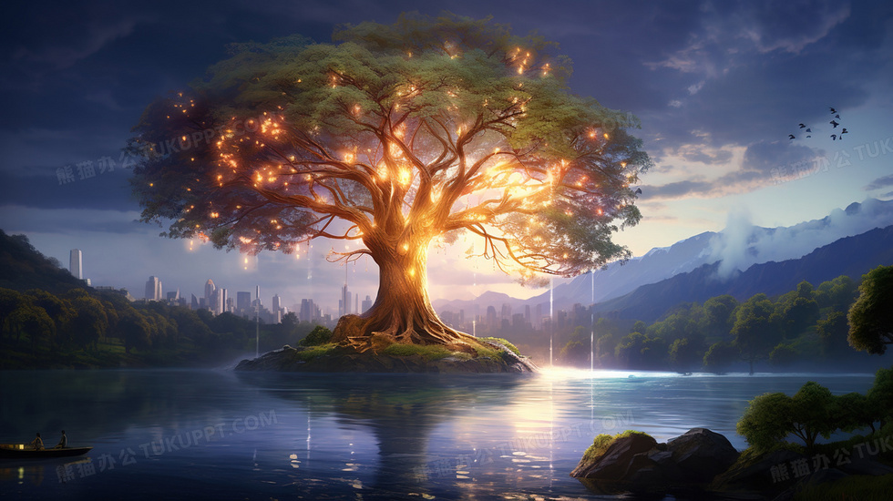本作品内容为河岸边一棵闪闪发光的魔法树插画, 格式为 jpg, 大小3 MB, 图片尺寸为2912 x 1632, 源文件无水印, 欢迎使用熊猫办公。 如认为平台内容涉嫌侵权,可通过邮件:tousu@tukuppt.com提出书面通知,我们将及时处理。