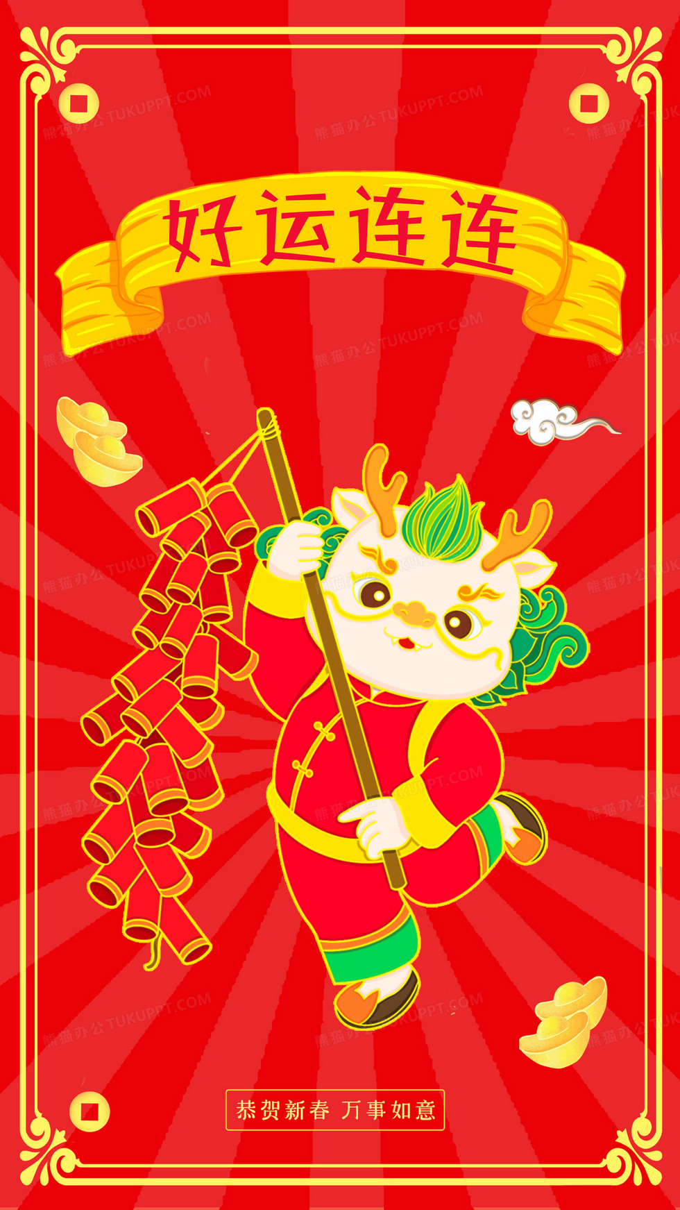 本作品内容为2024好运连连小龙插画, 格式为 psd, 大小14 MB, 请使用软件PhotoShop(CC)打开, 源文件无水印, 欢迎使用熊猫办公。 如认为平台内容涉嫌侵权,可通过邮件:tousu@tukuppt.com提出书面通知,我们将及时处理。