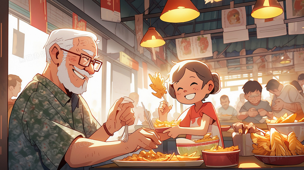 本作品内容为陪伴老人开心享用美食插画, 格式为 jpg, 大小3 MB, 图片尺寸为2912 x 1632, 源文件无水印, 欢迎使用熊猫办公。 如认为平台内容涉嫌侵权,可通过邮件:tousu@tukuppt.com提出书面通知,我们将及时处理。