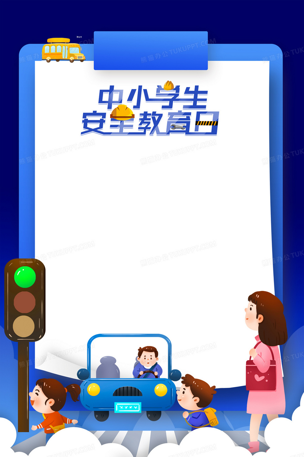 本作品内容为安全教育宣传交通安全背景, 格式为 psd, 大小21 MB, 图片尺寸为3543 x 5315, 作品中背景图片无需修改, 源文件无水印,可以直接使用, 欢迎使用熊猫办公。 如认为平台内容涉嫌侵权,可通过邮件:tousu@tukuppt.com提出书面通知,我们将及时处理。