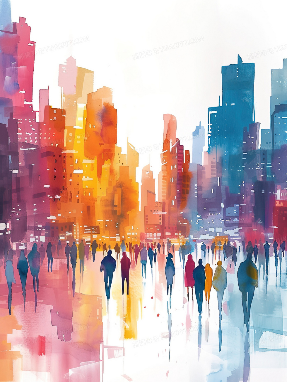 本作品内容为彩色手绘城市穿梭的人群插画, 格式为 jpg, 大小3 MB, 图片尺寸为1856 x 2464, 源文件无水印, 欢迎使用熊猫办公。 如认为平台内容涉嫌侵权,可通过邮件:tousu@tukuppt.com提出书面通知,我们将及时处理。
